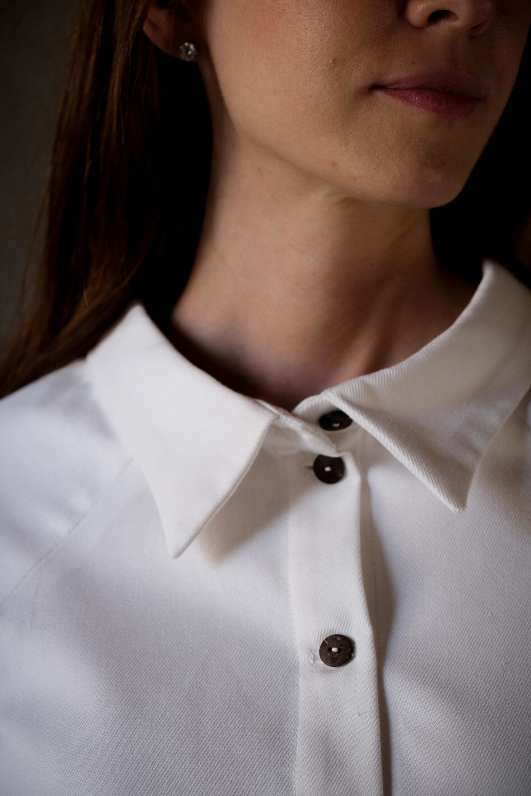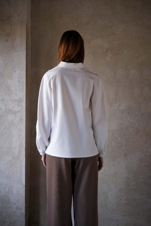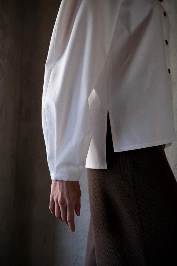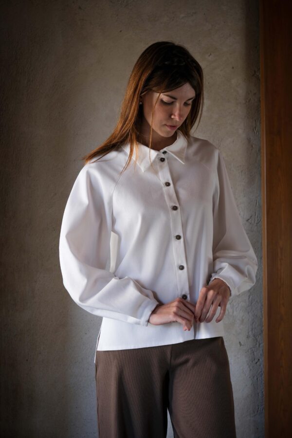 Descubre La Camisa blanca de manga abullonada con abertura ancha lateral  de Gemma Oriol, hecha a mano y siguiendo los criterios de sostenibilidad.