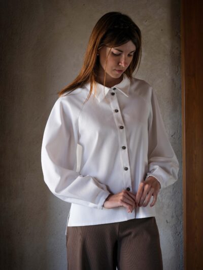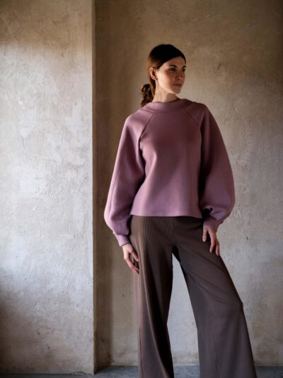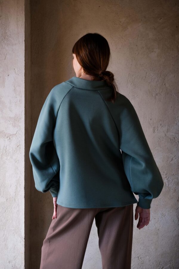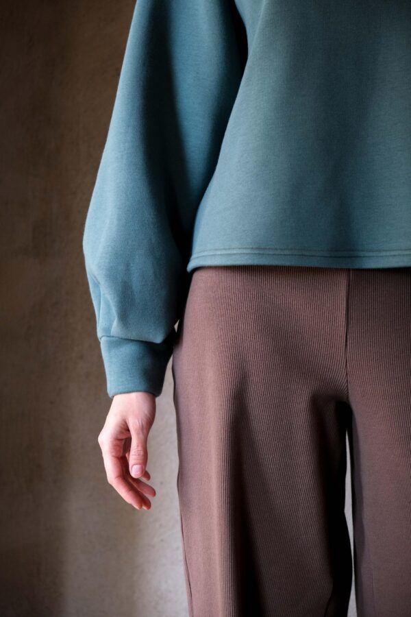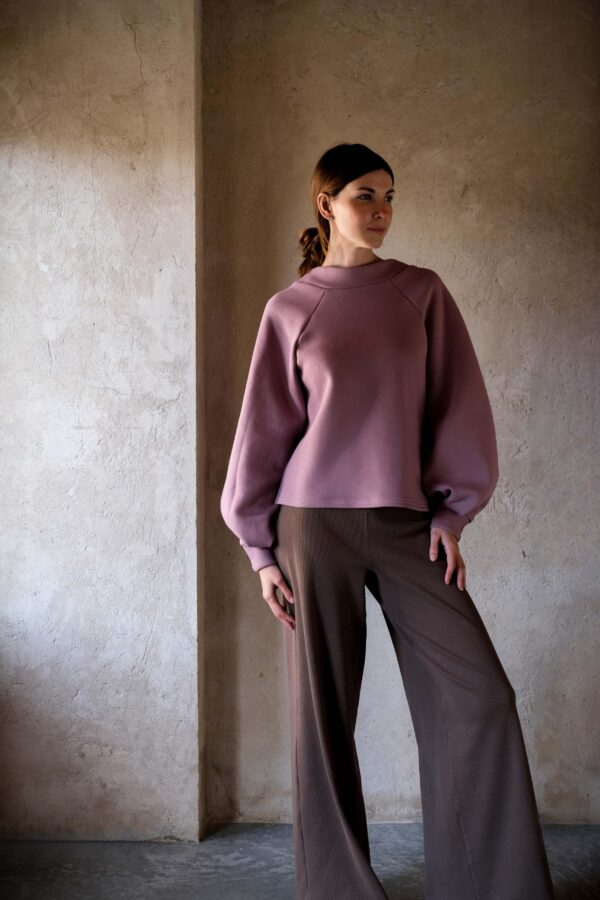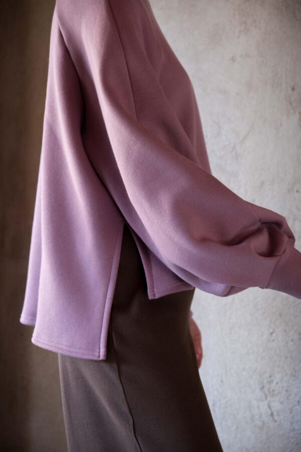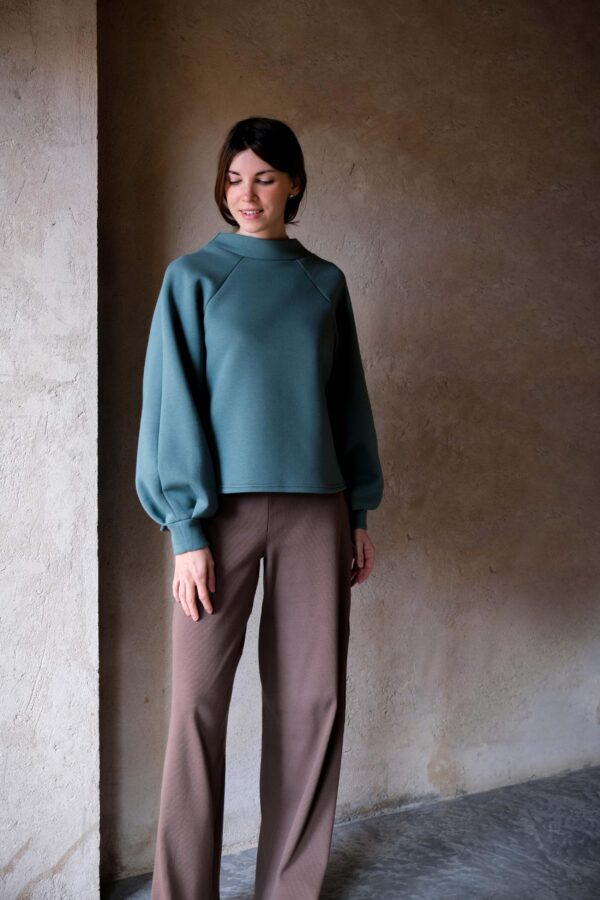 Sudadera de cuello alto de algodón orgánico con mangas abullonadas.